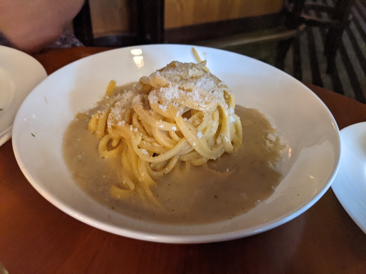 “Had a lovely meal here last night . Very good service except at the very end when they never returned for plates and to bring dessert menu. Service was great until that point .Tortellini was delicious. Recommend .”